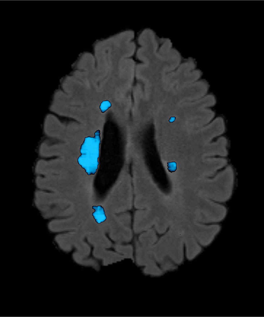 AI:ON’s artificial intelligence technology effectively segments MS lesions in brain MRI scans for comprehensive review by radiologists.